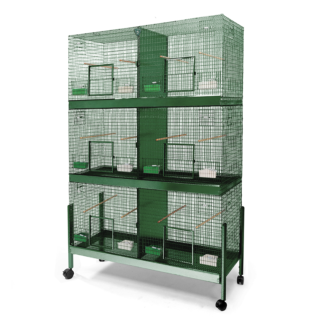 Shown above: 48x18x22 BreederPro™ Cage Three Level in Green Powdercoat finish with Optional Leg Base Kit & Euro-Style Casters.