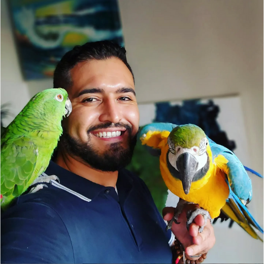 Raised on a ranch in Mexico, Christian’s journey began in the fields and nest boxes of his grandparents' land, where flocks of wild Amazon parrots shared space with chickens, ducks, geese, and turkeys. “My earliest memories are collecting eggs with my grandmother and hand-feeding injured parrots we rescued together,” he recalls.
